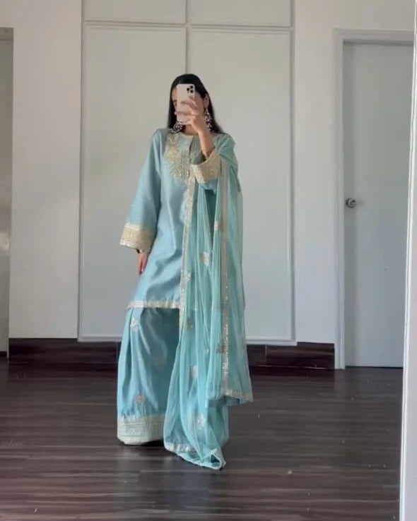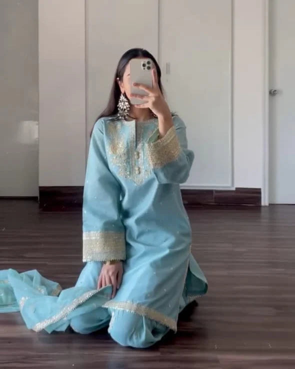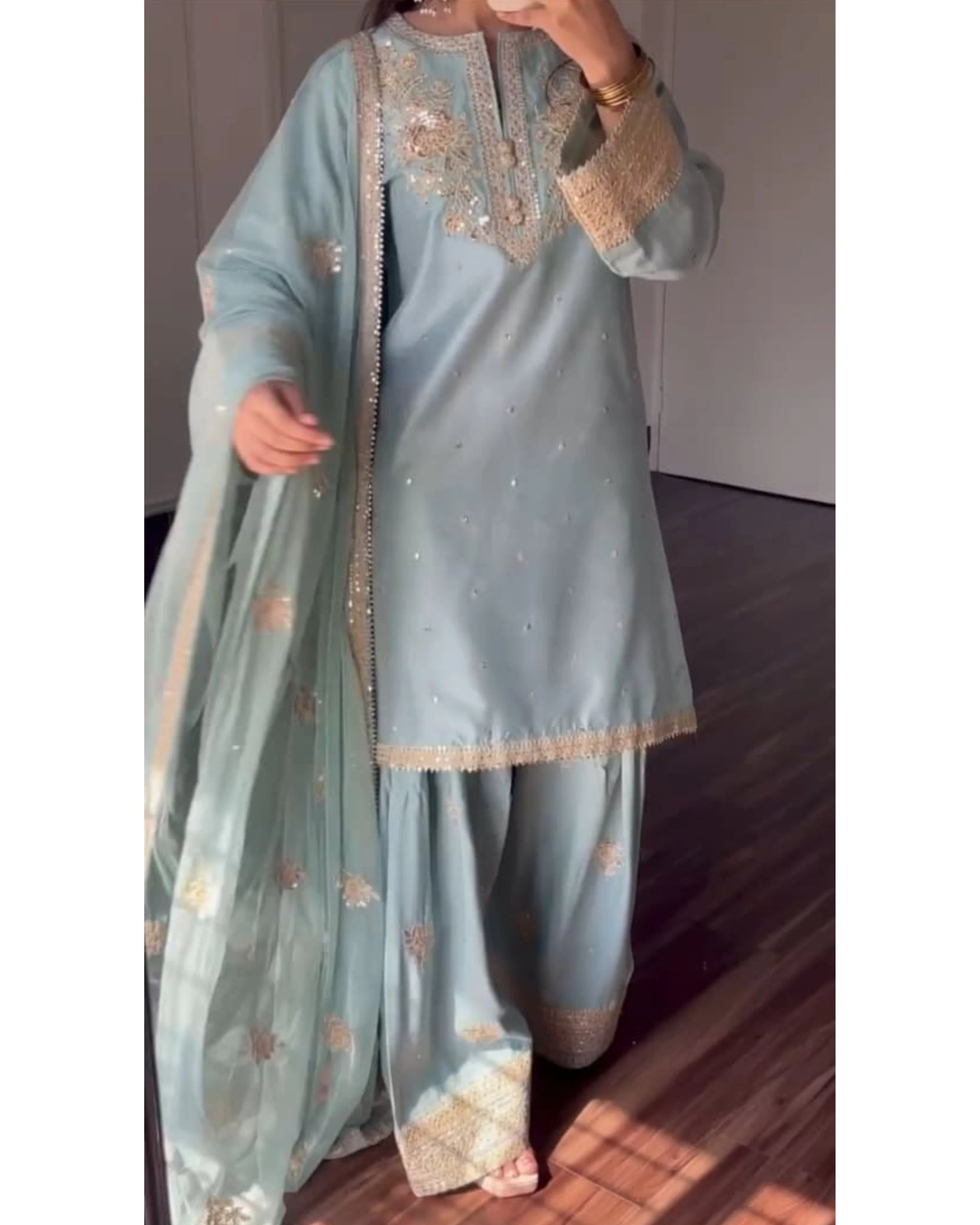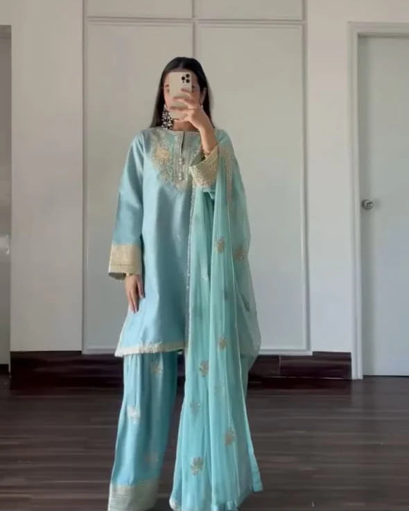 Raw silk 3-PC Masterpiece with Chiffon duppatta